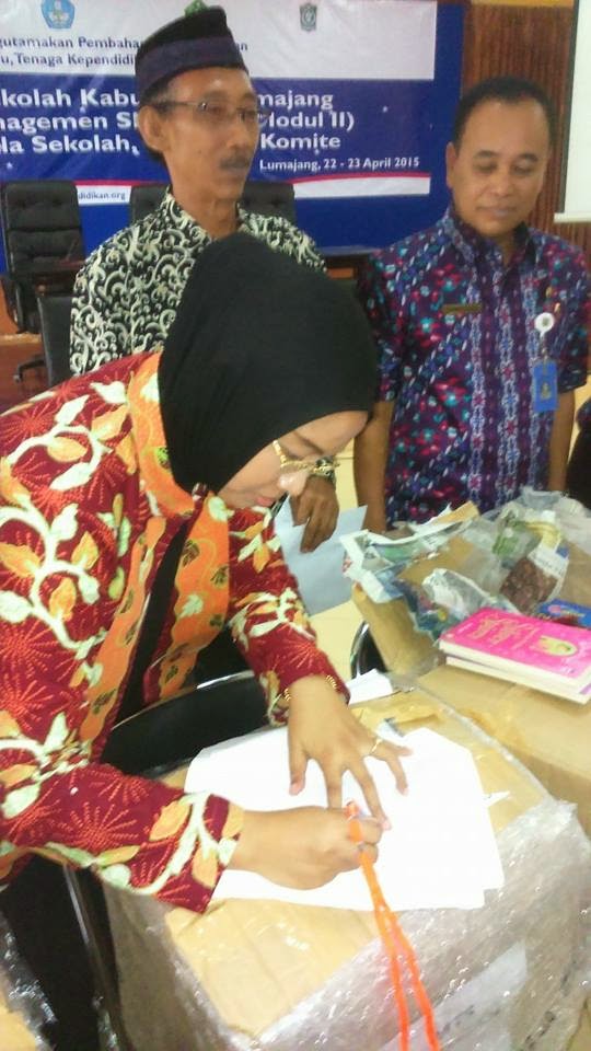 Alhamdulillah, semenjak bermitra dengan USAID PRIORITAS mulai November 2014, MTs Pester Al Fauzan Lumajang banyak sekali mendapatkan hal-hal yang positif dan bermanfaat, mulai dari pelatihan guru, pendampingan, showcase, dll. Setelah mendapatkan banyak pelatihan dan bimbingan, MTs Pester Al Fauzan kembali mendapatkan 150 buku bacaan dengan cuma-cuma. Buku tersebut diterima langsung oleh Nyai Nur Ifadah SH.,MA tepat setelah penutupan pelatihan Kepala dan Komite Sekolah tanggal 22-23 April 2015 di aula Dinas Pendidikan Lumajang, Wonorejo – Lumajang.
